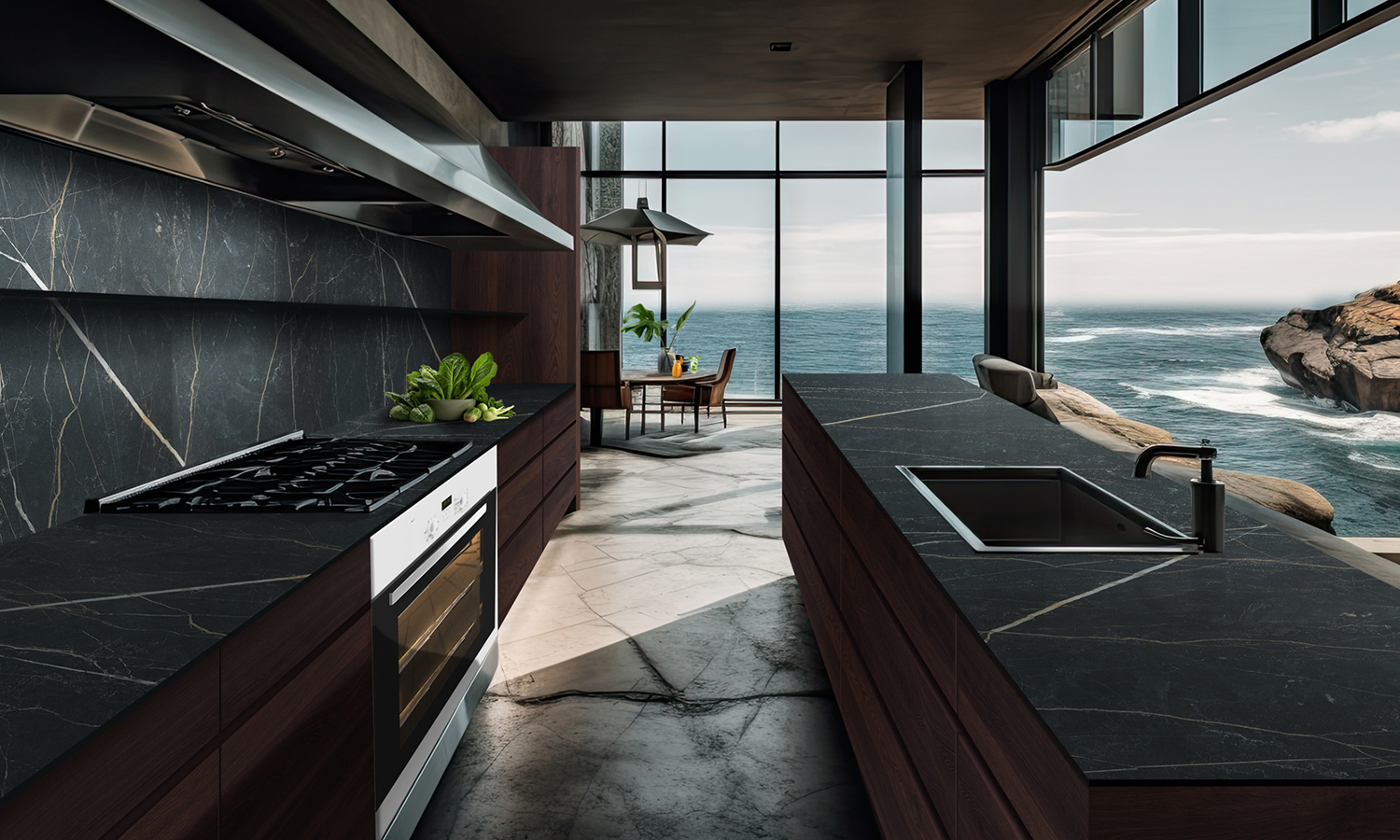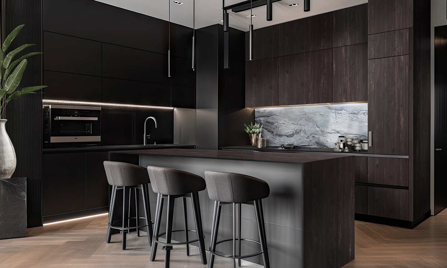 L155 Мармур Річмонд – забарвлення темного мармуру, збагачене красивим природним малюнком дозволяє створювати інтер'єри з вишуканим сучасним стилем. Чудово виглядає при будь-якому освітленні – від природного світла до штучного.