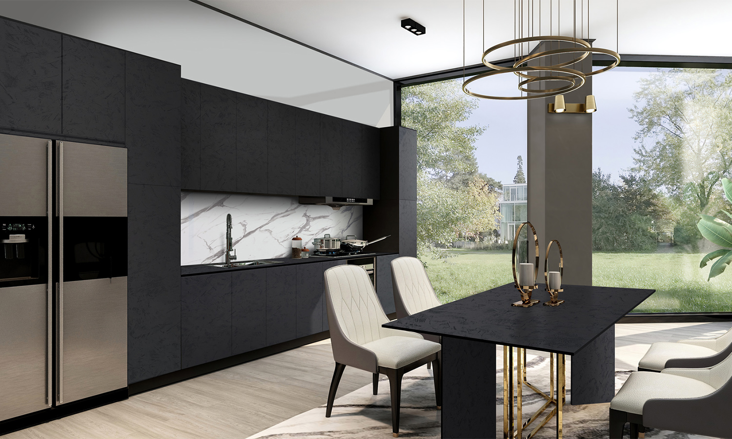 Трендова колірна гама у поєднанні з високотехнологічним матеріалом створює привабливий та функціональний інтер'єр.